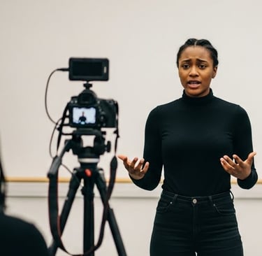 Focado na linguagem da câmera, o curso trabalha naturalismo, marcação, construção de personagem e interpretação técnica. Com práticas gravadas e exercícios de cena, o aluno desenvolve segurança, expressão e presença diante das lentes.